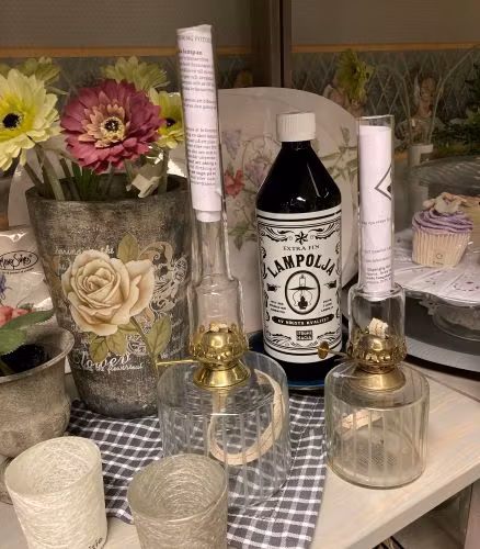 Lampolja extra fin, helt ren, ofärgad och aromatfri. Ger en stabil och sotfri låga. Tillverkad av n-paraffiner. Flaskan rymmer 1 liter.