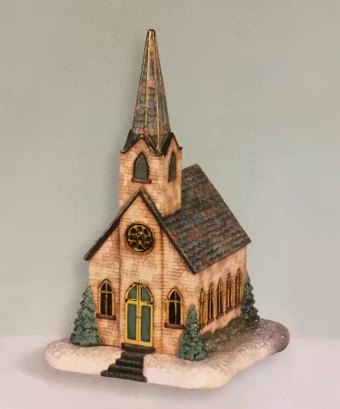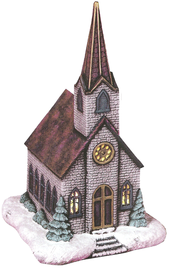 Stor kyrka med hela utskurna fönster. Om man vill ha utskurna spröjs så beställ S-792s. Till Kyrkan bör också beställas en bas S-793. (Den går att dra in el i).