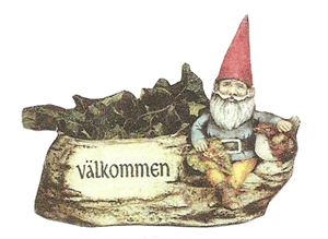 Vätte/ tomte med en fågel, K-3408, den målas för sig innan den sätts på krukan. (Här sitter den på stubbe/kruka med form nr:K-3400). Priset anger tomten med fågel och vit omålad keramik.