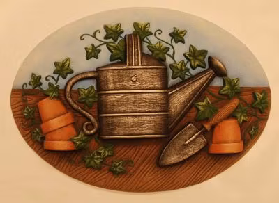 Motivplatta med trädgårdsinsperation D-1620. Passar till klocka D-1534, korg D1301, kakburk D-1456 och välkommenskyltar D-1797 och D-1756. Priset anger vit omålad keramik.